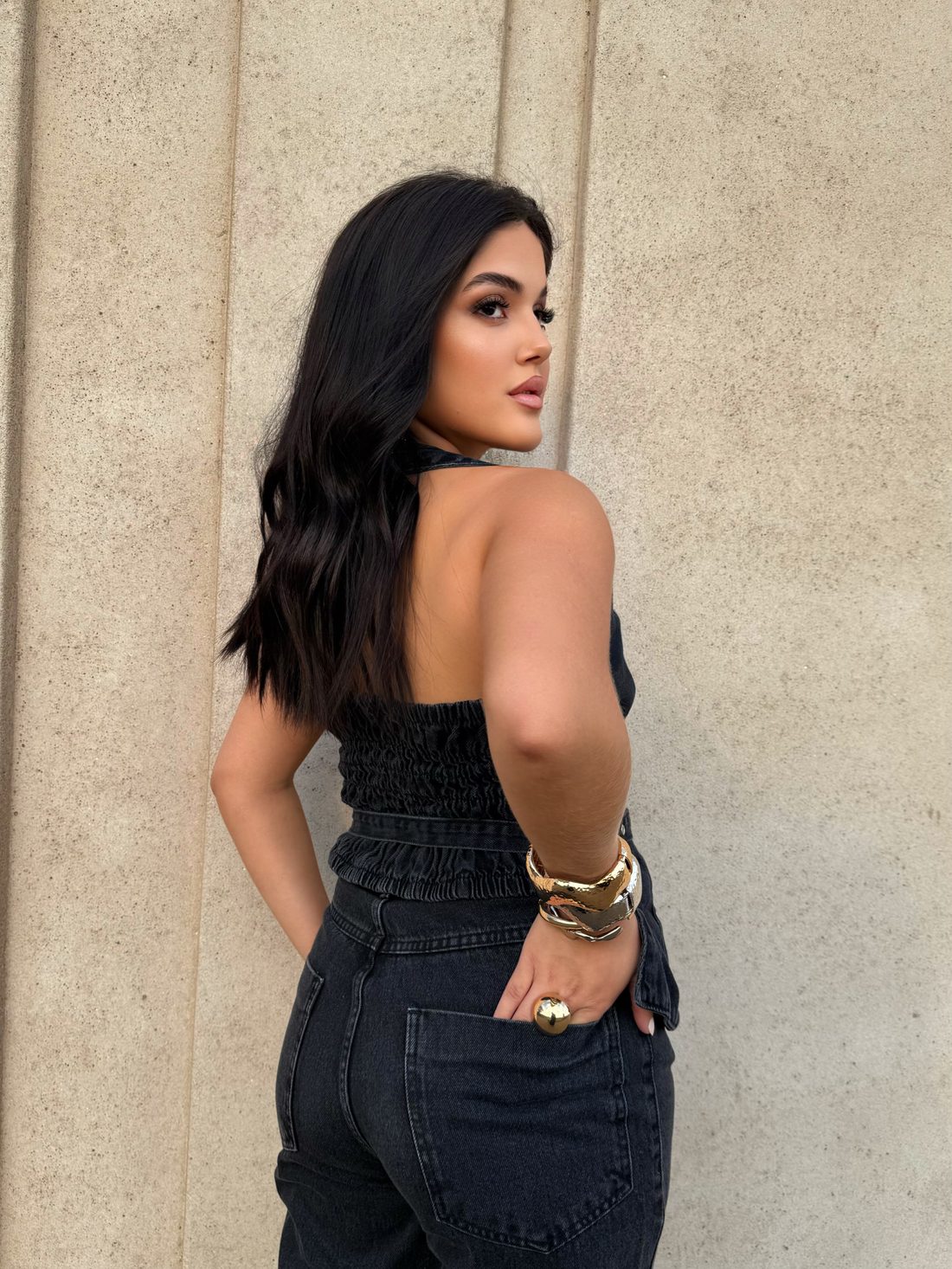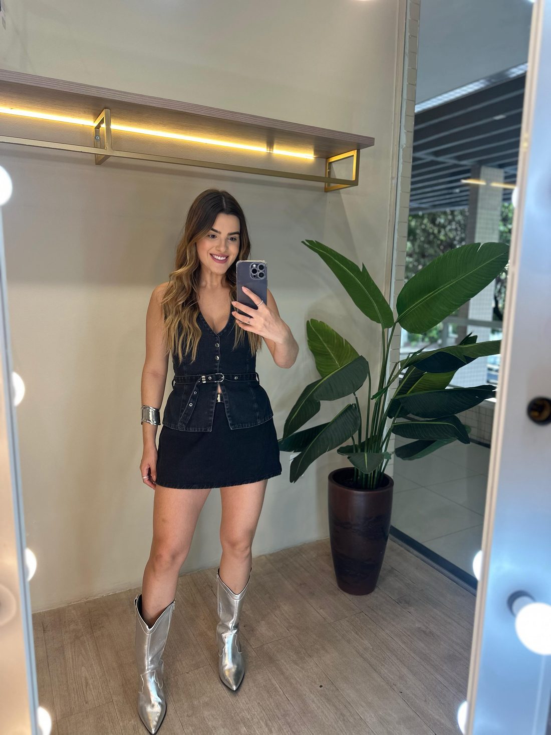 A Blusa Jeans Marbella é puro statement: confeccionada em jeans estruturado, ela traz decote em “V” profundo, fechamento frontal por botões e cinto ajustável na cintura que valoriza as curvas de forma sofisticada. O corte moderno garante atitude, enquanto a modelagem reta entrega equilíbrio entre sensualidade e elegância.