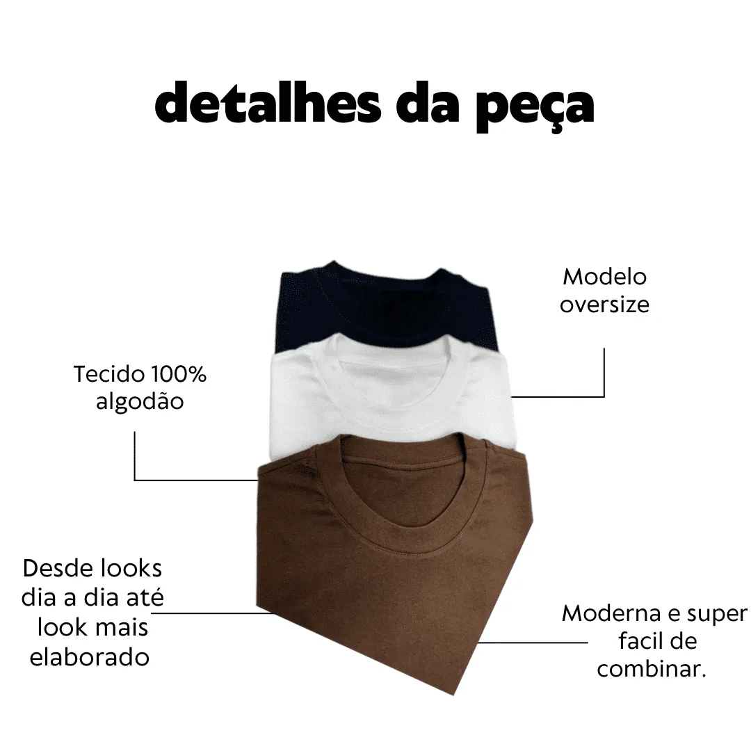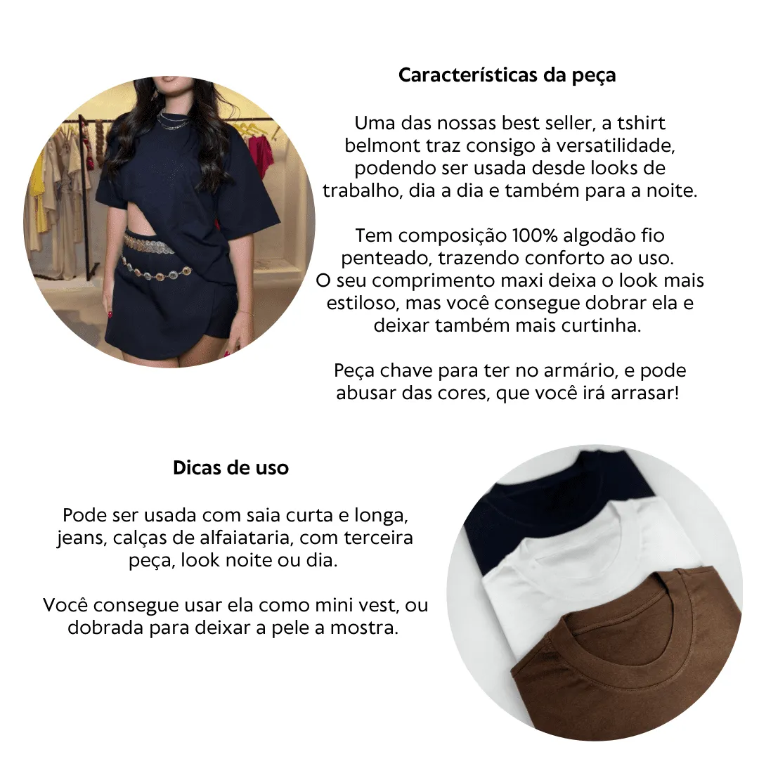 Tshirt modelagem maxi, feita no tecido 100% algodão de fio penteado, que traz mais conforto ao uso, por ser um tecido de fibras naturais.